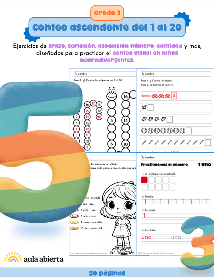 En Aula Abierta creamos recursos y experiencias educativas —desde materiales imprimibles y webinars, hasta herramientas prácticas para el día a día— que entienden la forma única de aprender de cada niño.